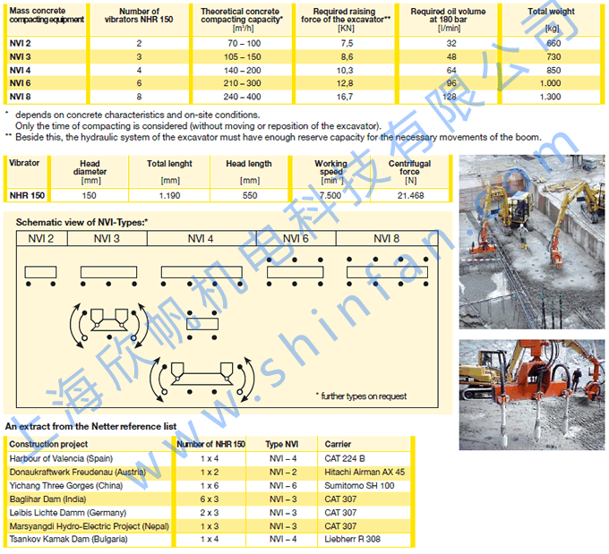 大塊混凝土壓實(shí)系統(tǒng)與NETTER NVI液壓 插入式振搗器NHR 150 ,壓實(shí)粗粒度的大體積混凝土 對于安裝于液壓挖掘機(jī)和裝載機(jī)