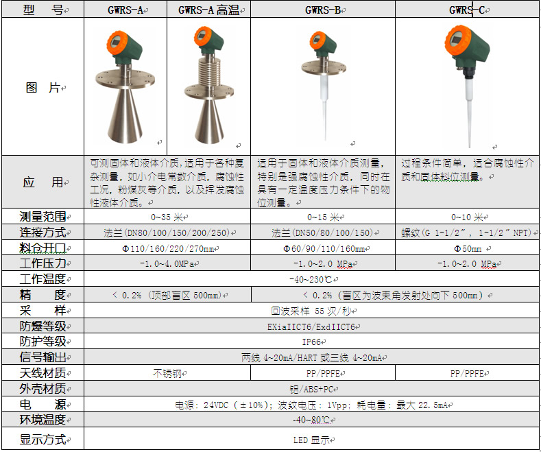 GWRS型雷達(dá)物位計(jì)因其特殊的非接觸式測量特性,可對(duì)有污染性和腐蝕性的介質(zhì)進(jìn)行準(zhǔn)確的測量,其穩(wěn)定和準(zhǔn)確的表現(xiàn)也同樣體現(xiàn)在復(fù)雜的測量環(huán)境下。輸出的4~20mA信號(hào)可以提供遠(yuǎn)端控制,采用了獨(dú)特的微波技術(shù)和Echo-tech回波處理技術(shù)以適應(yīng)各種工況。脈沖的工作方式可測小介電常數(shù)介質(zhì),并安全適用于各種金屬,非金屬容器內(nèi),對(duì)人體及環(huán)境無傷害。